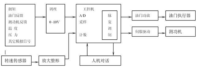 計算機根據采集的數據,綜合用戶面板的給定狀態,經過一系列控制算法的運算,變成直接推動測功機的脈沖信號,實現了計算機直接數字控制(DDC)。